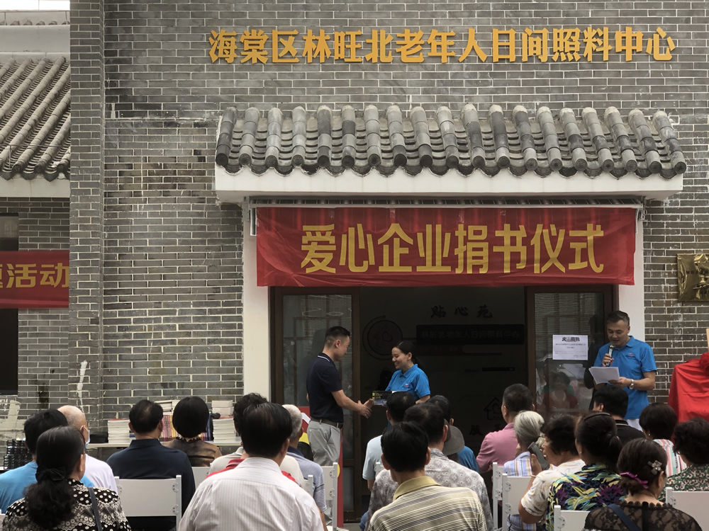 三亞綠盾環(huán)??萍加邢薰娟P愛老人,熱心公益,為為海棠區(qū)林旺北老年人日間照料中心捐贈書籍。